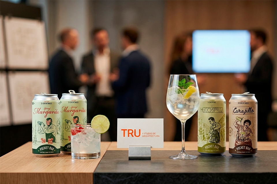 Pocket Bar no solo acompañó el evento de TRU Arquitectos, fue parte de la experiencia. Un brindis compartido entre colegas, un gesto de celebración auténtica, una forma distinta de vivir un momento corporativo sin perder estilo.